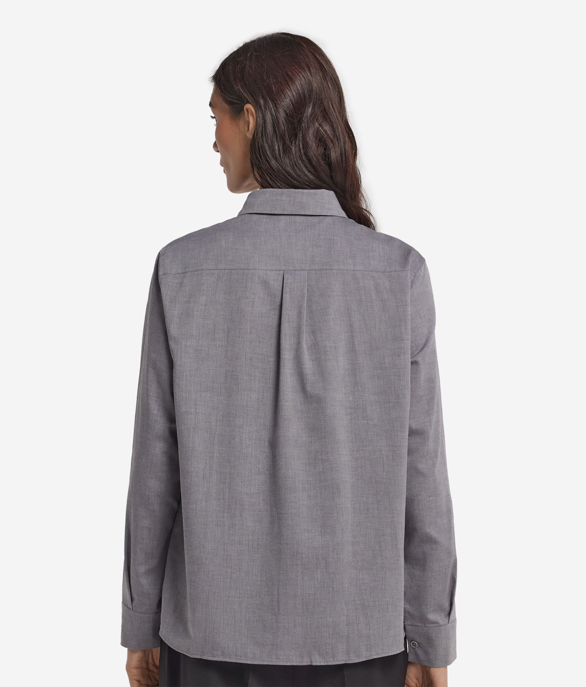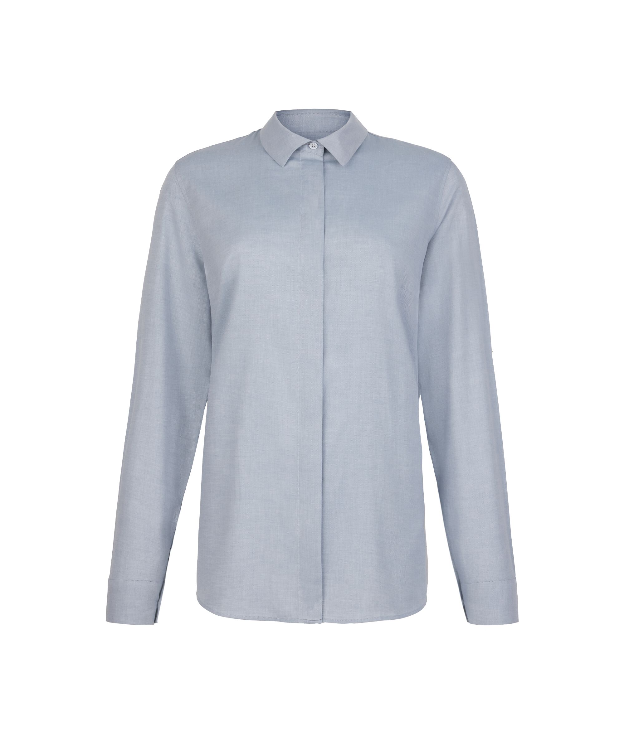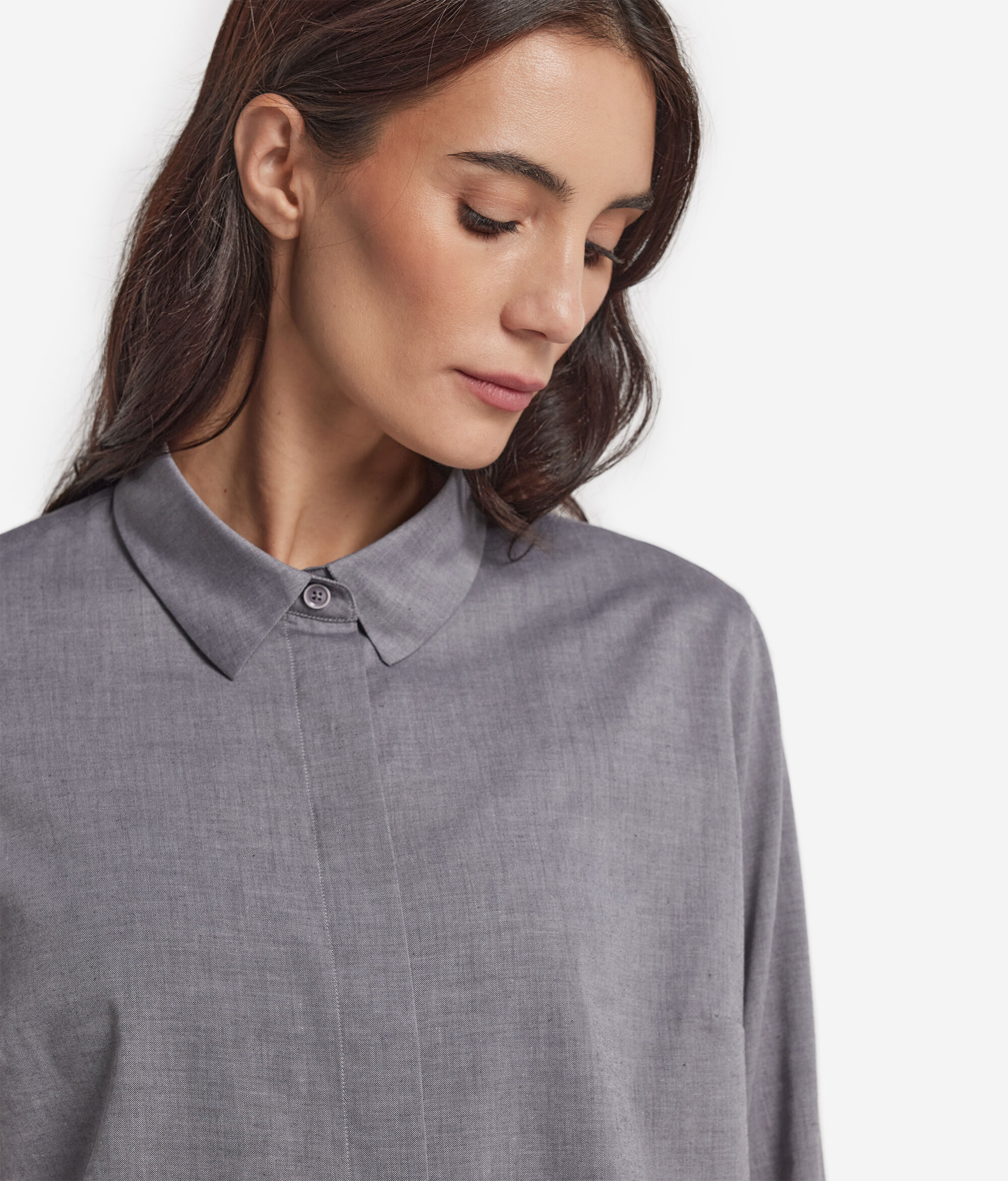Minimalist and refined, this shirt is crafted from a luxurious cashmere-cotton blend that combines elegance with a gentle touch. The classic collar and concealed front placket create a sleek, modern look, while buttoned cuffs add a refined touch. The rounded hem and Regular Fit. We recommend sizing up one to two sizes for the best fit create a smooth, versatile silhouette, ideal for refined casual looks that can be effortlessly worn in both informal and more sophisticated settings.