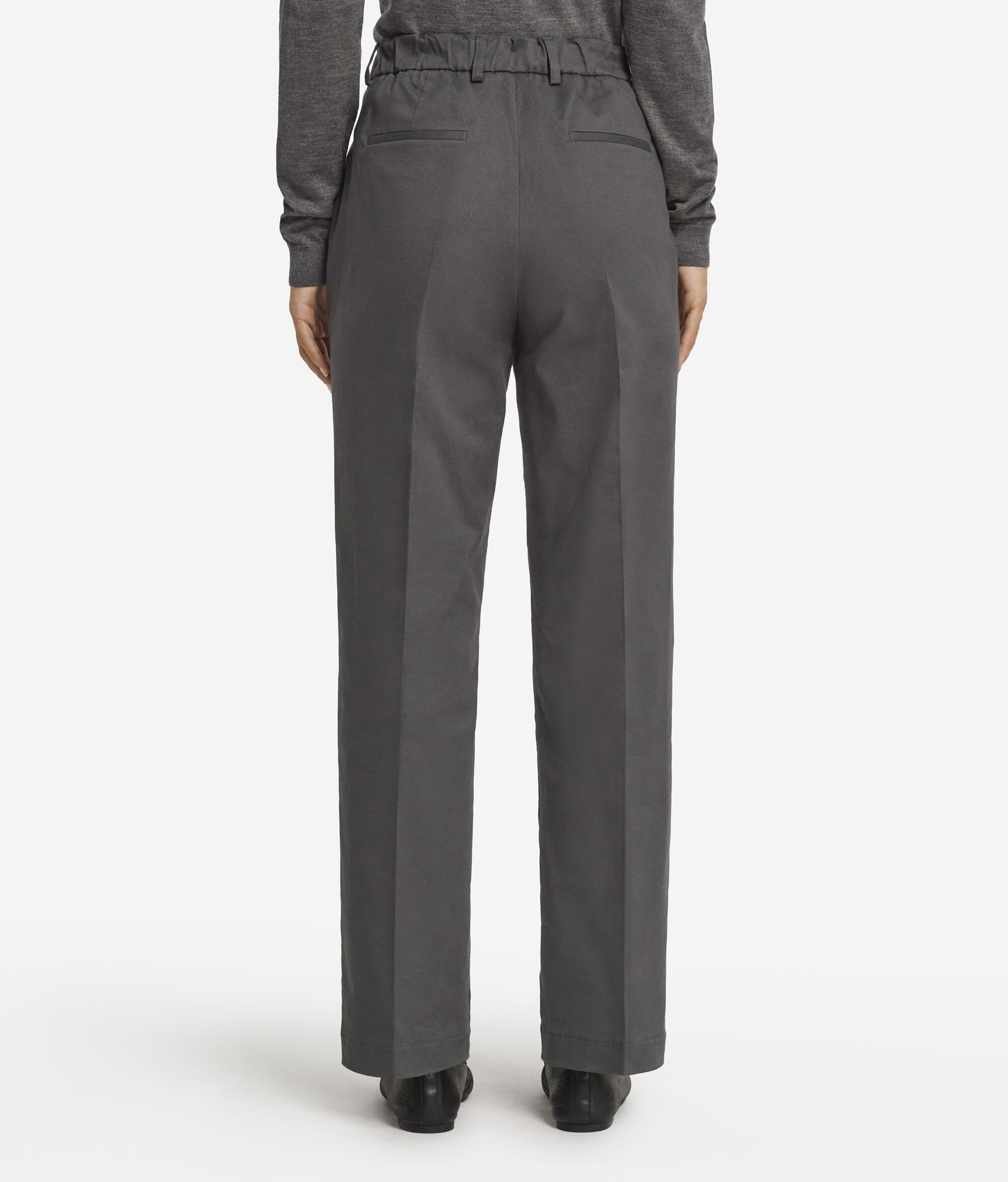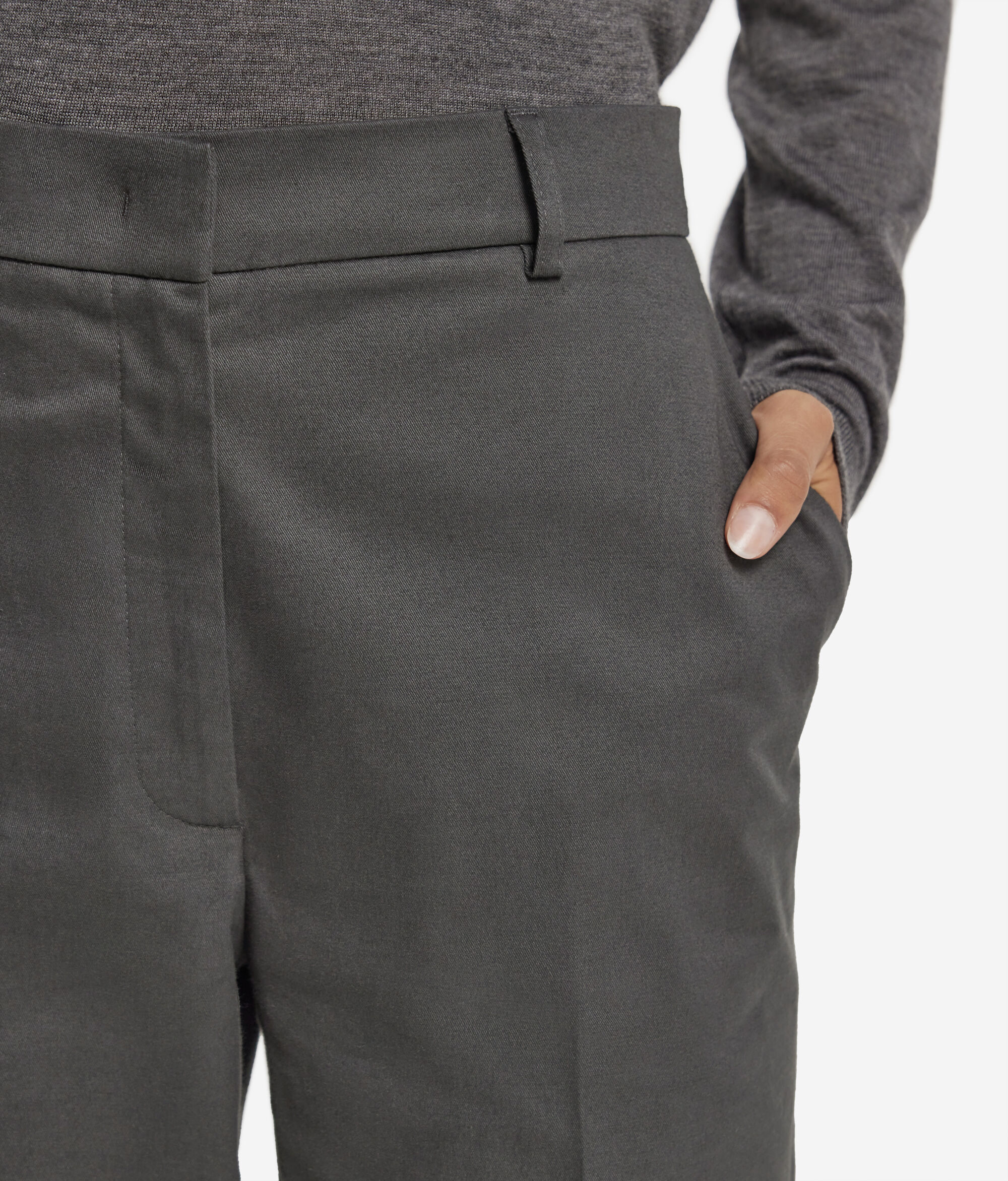 Cotton and cashmere converge in these cigarette trousers, offering an exceptional feel and a sculpted silhouette. Pockets at the hips provide a practical, subtle detail, while the regular silhouette and ankle length strike an ideal balance between modern elegance and everyday functionality. A versatile garment that seamlessly complements both professional attire and more casual moments.