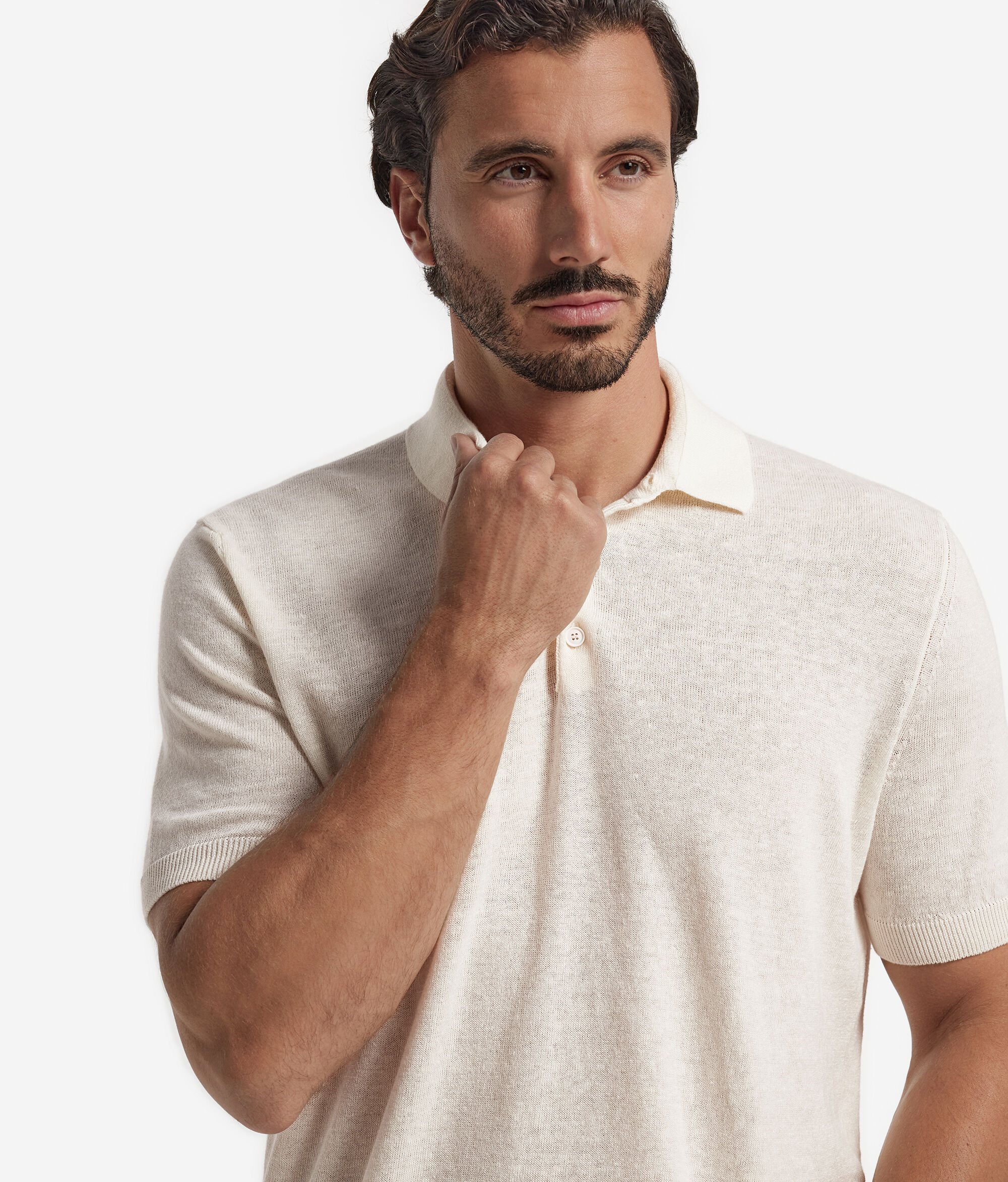 A male clothing staple, the polo shirt is the perfect garment for spring and summer. Falconeri offers its version in cool linen/cotton featuring the clean and simple lines that are so typical of the brand.