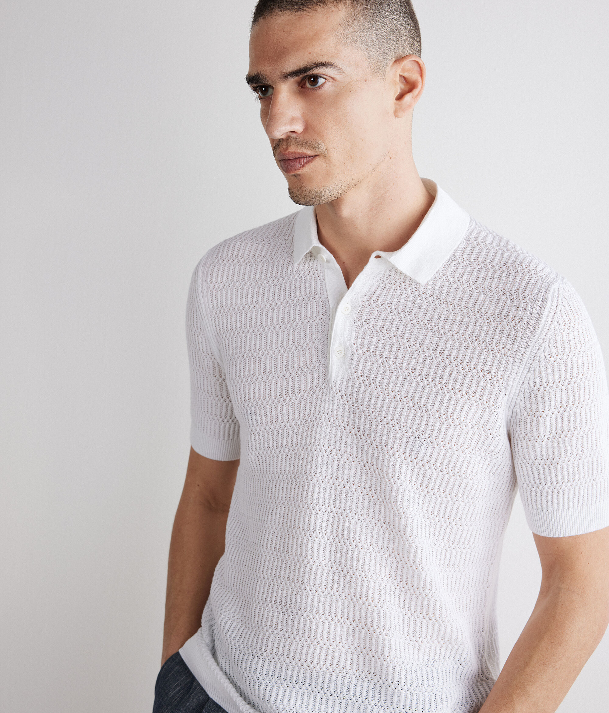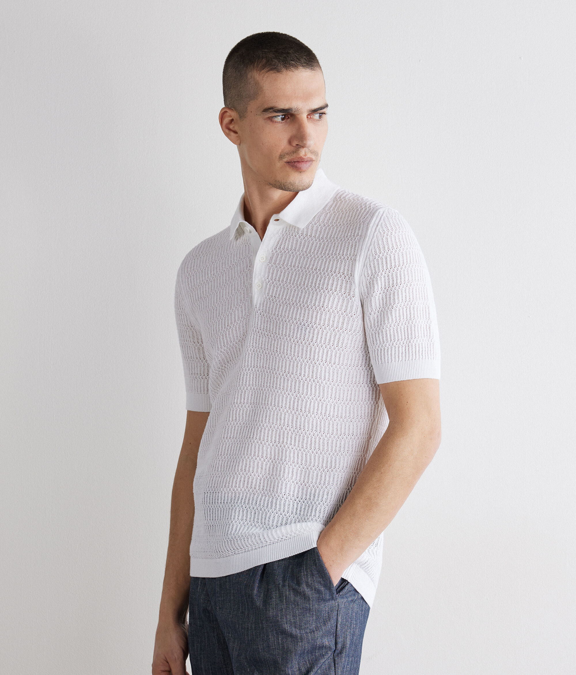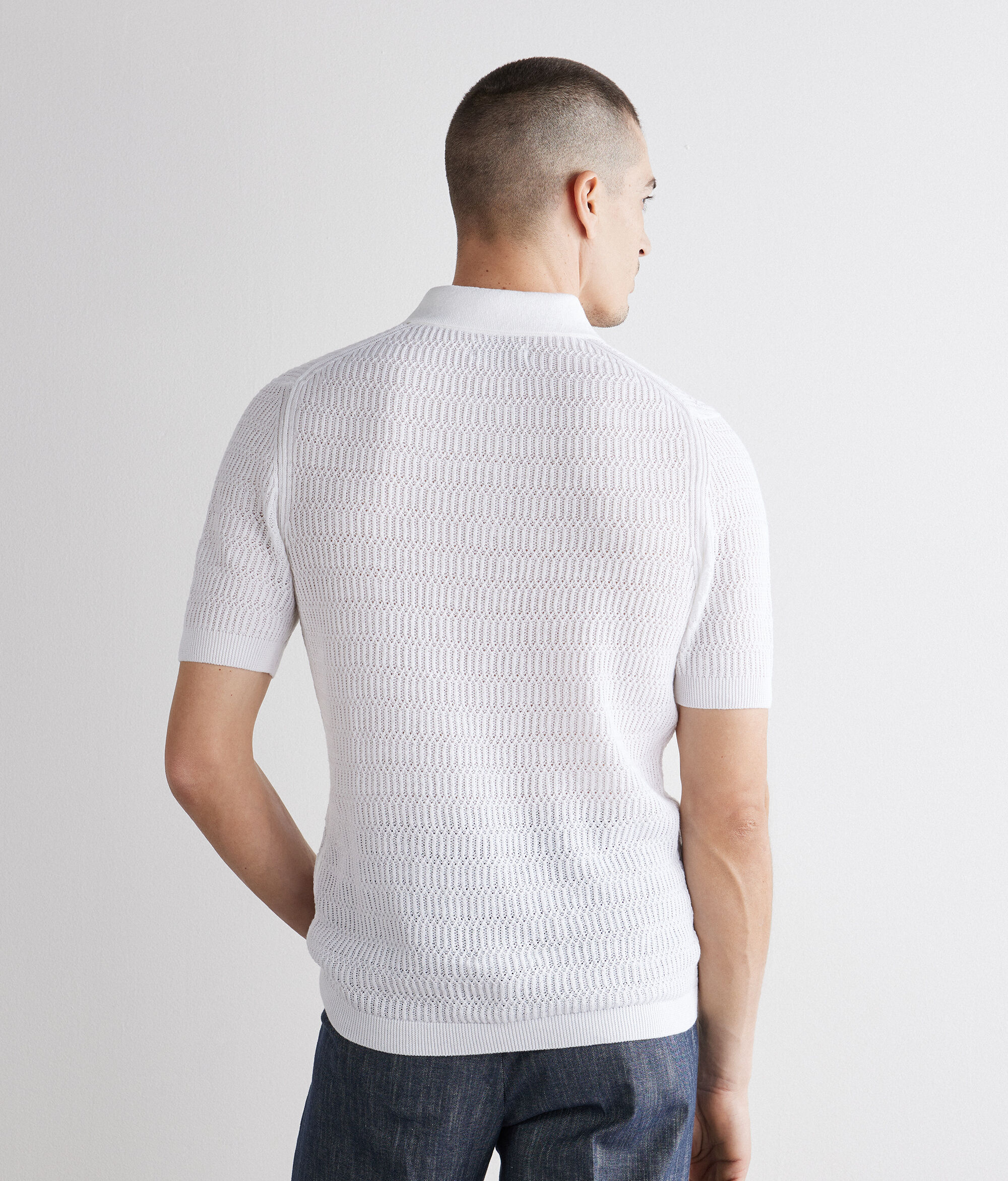 Polo con lavorazione punto mosso, realizzata in cotone e lino (52% cotone, 48% lino). Le finiture a costine su fondo e maniche completano il capo dalla vestibilità rilassata.