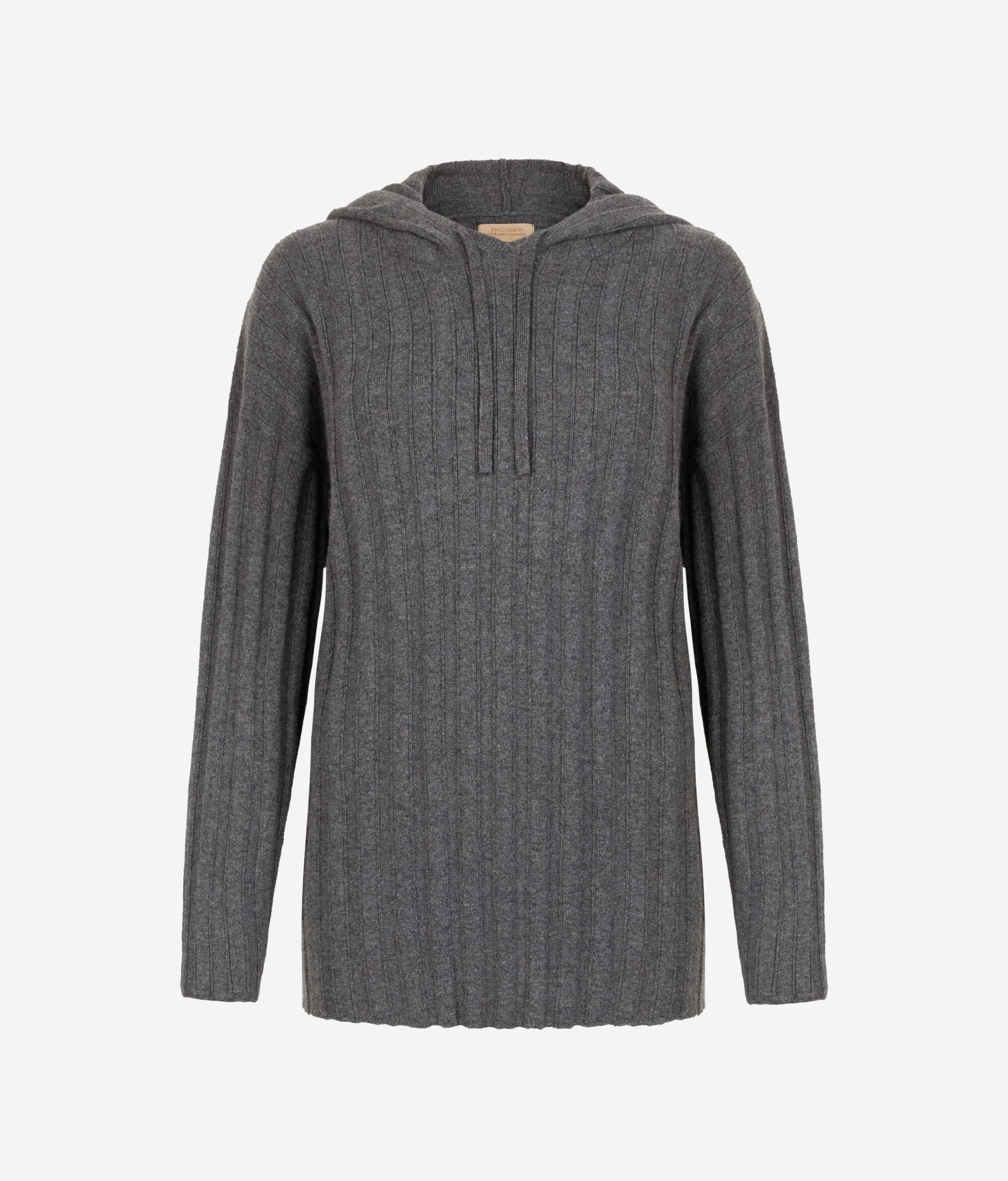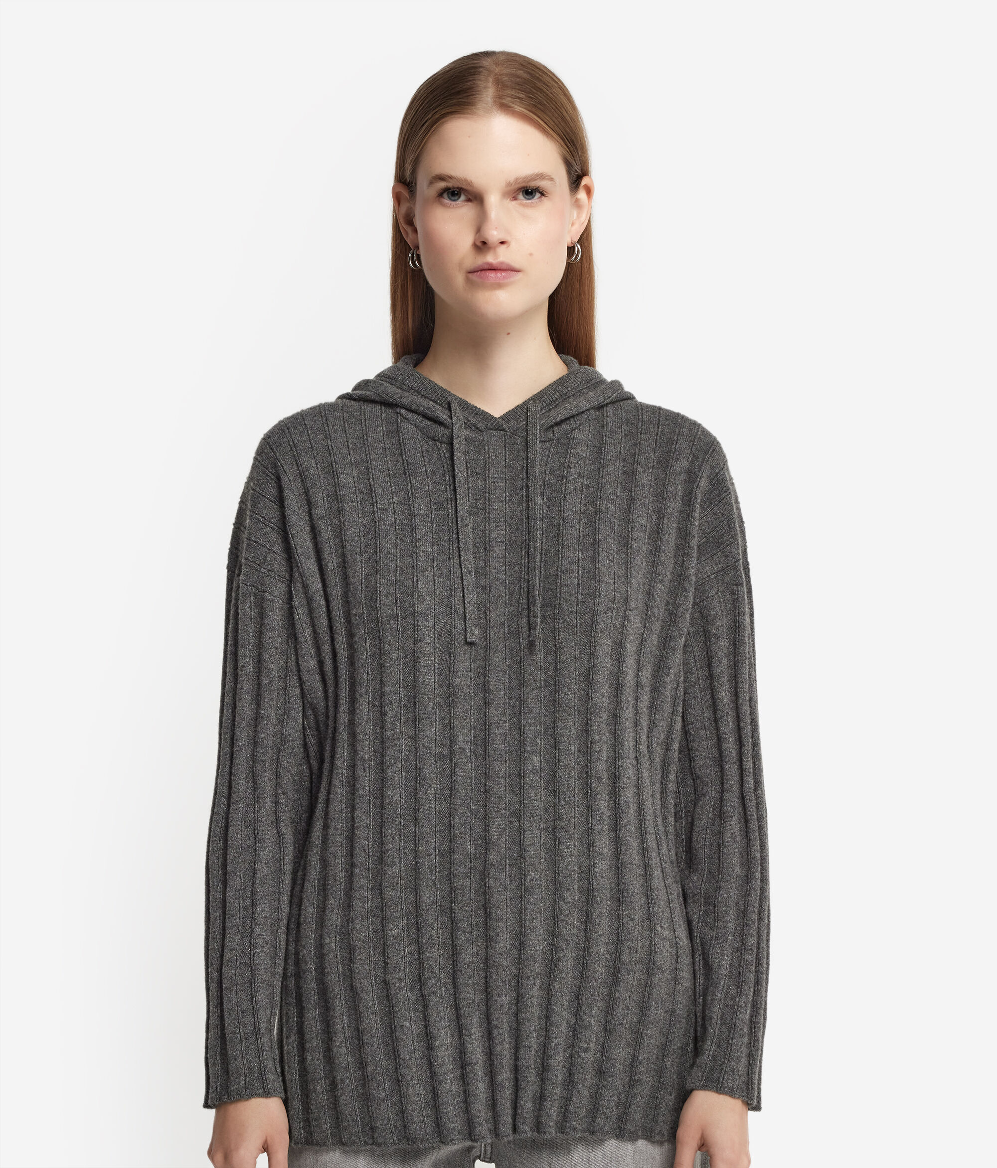 Discover the comfort and casual elegance of this sweatshirt, made from luxurious Ultrasoft cashmere. The garment features an adjustable drawstring hood and a ribbed design to help lend texture and sophistication to the fabric. Attention to detail is shown through the two side slits and ribbed trim on the hood. The loose, relaxed fit with dropped shoulders creates a casual, contemporary look, perfect for spending some downtime.