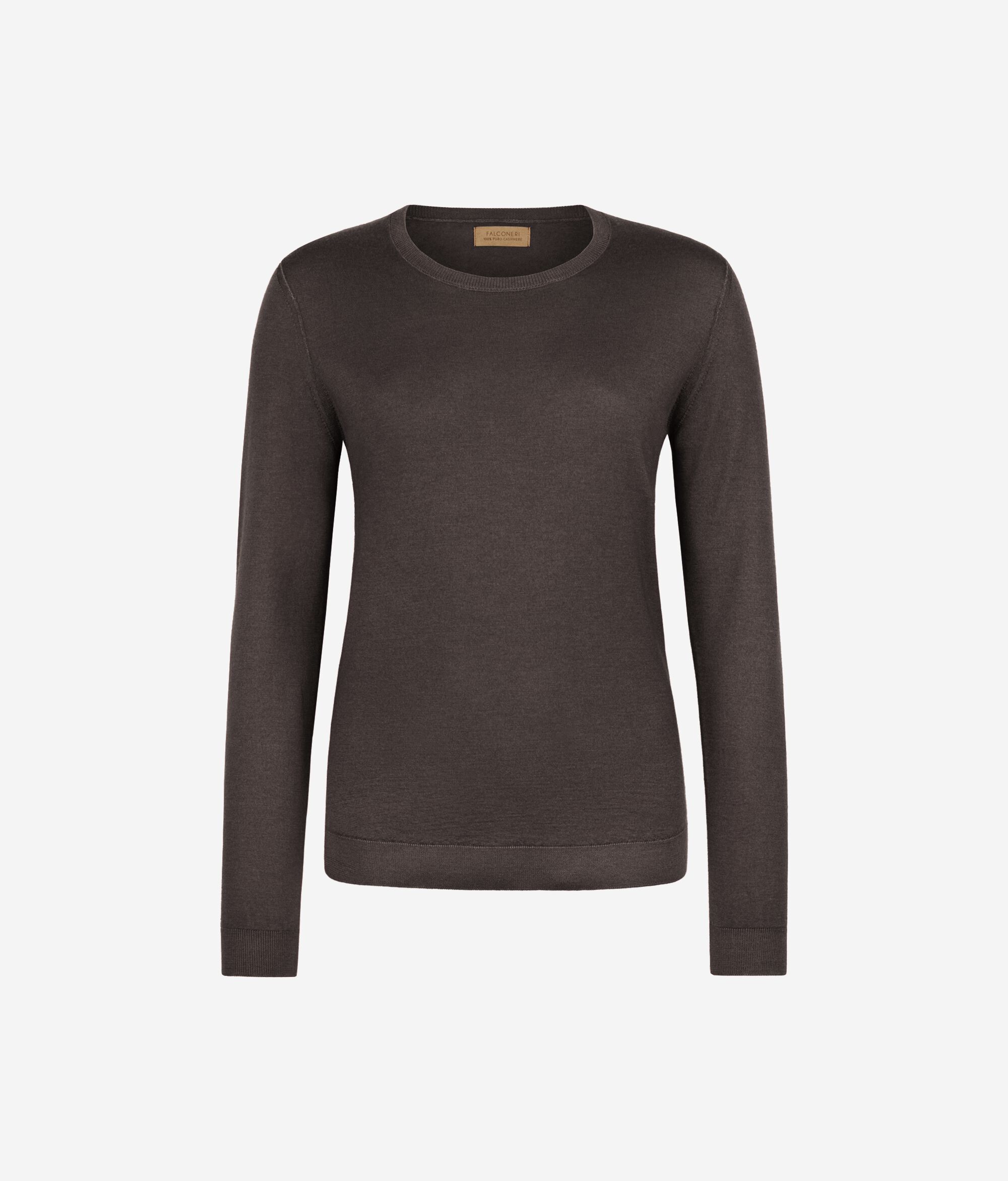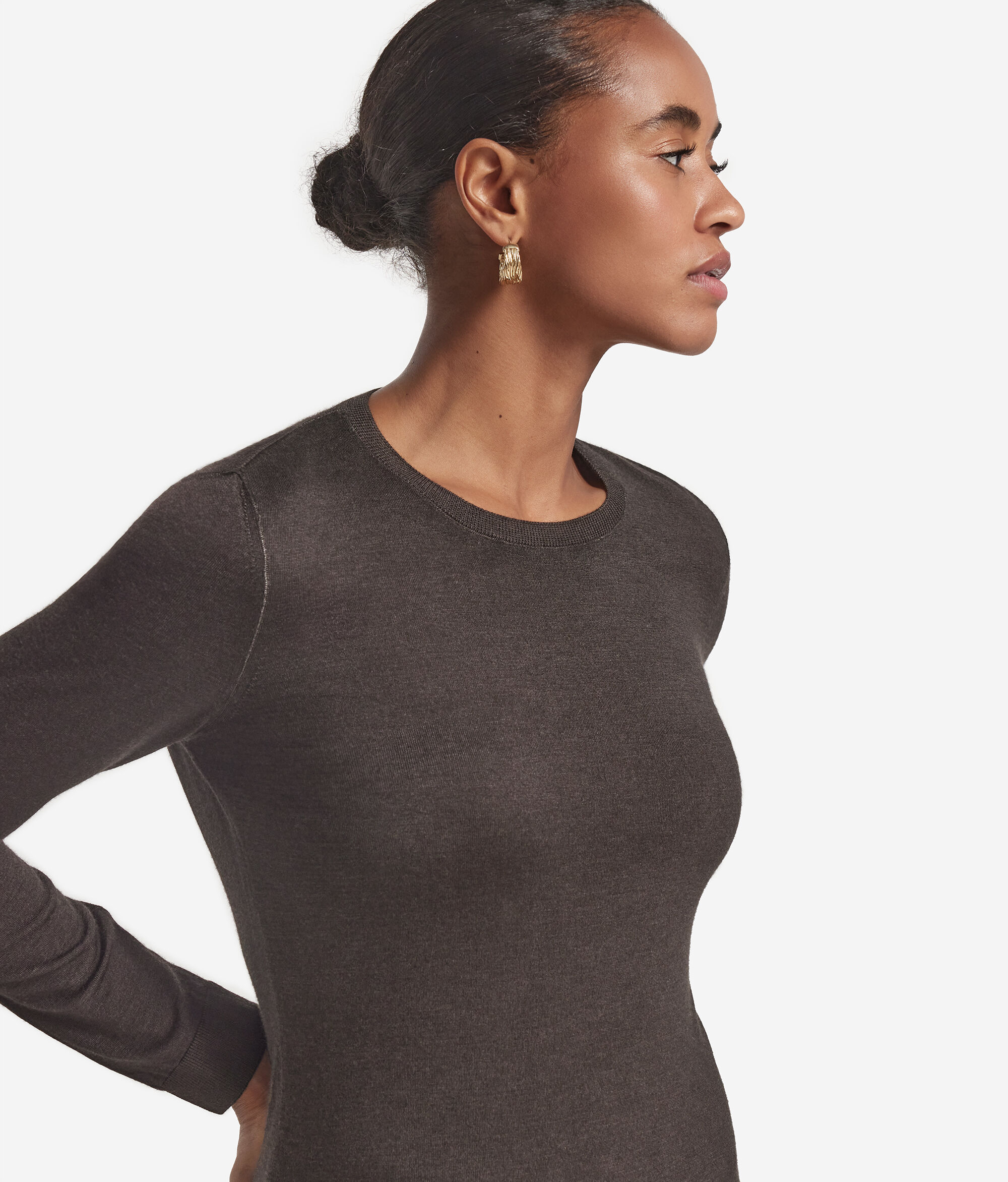 Classic and essential, this round-neck jumper is crafted entirely in Ultrafine Cashmere. The design stands out thanks to a slightly rounded hem. The Regular Fit. We recommend sizing up one to two sizes for the best fit is designed to fit comfortably, ensuring a flawless look.