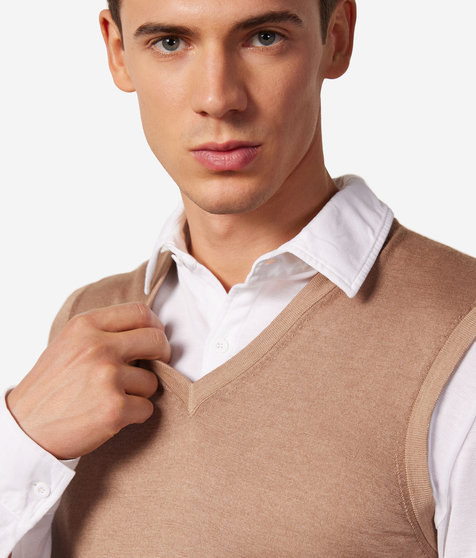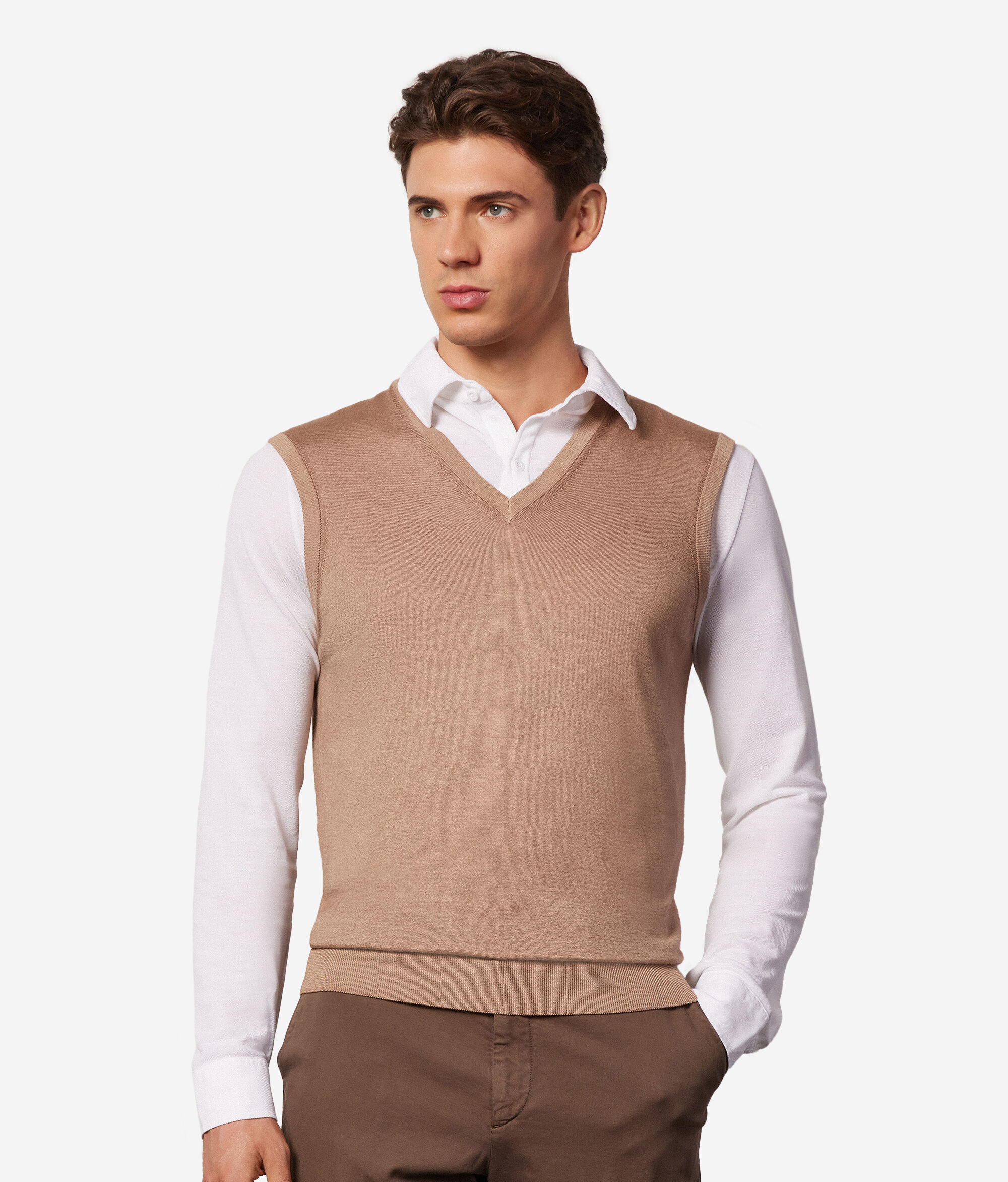 The iconic Ultrafine Cashmere yarn enhances the classic feel of the sleeveless jumper, perfect for any style and occasion. Comfortable regular fit.
