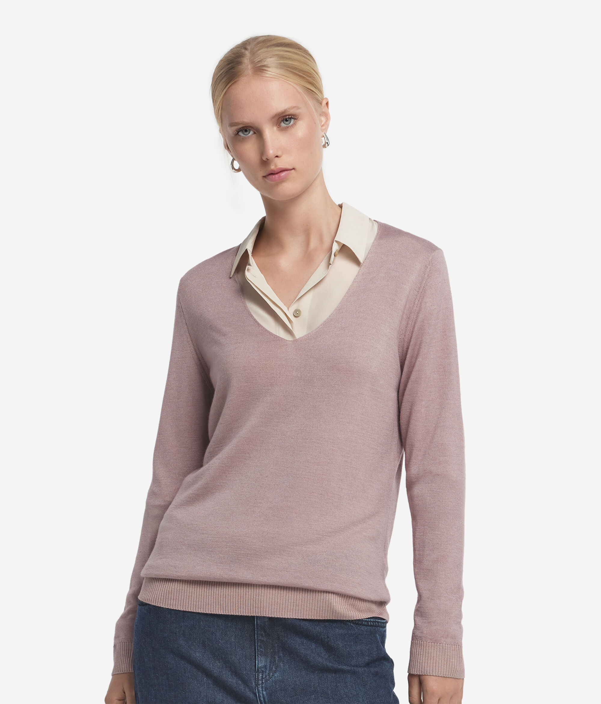 Ultrafine Cashmere jumper with V-neck, long sleeves and slightly dropped shoulders. Featuring a ribbed finish on the neckline, hem and cuffs. Regular Fit. We recommend sizing up one to two sizes for the best fit and shoulders. This item of clothing in garment-dyed colour variations has undergone a handcrafted dyeing process.