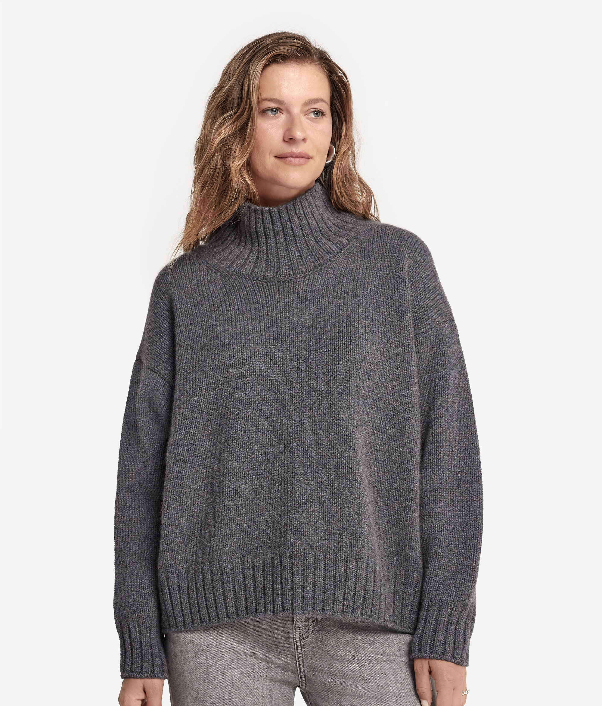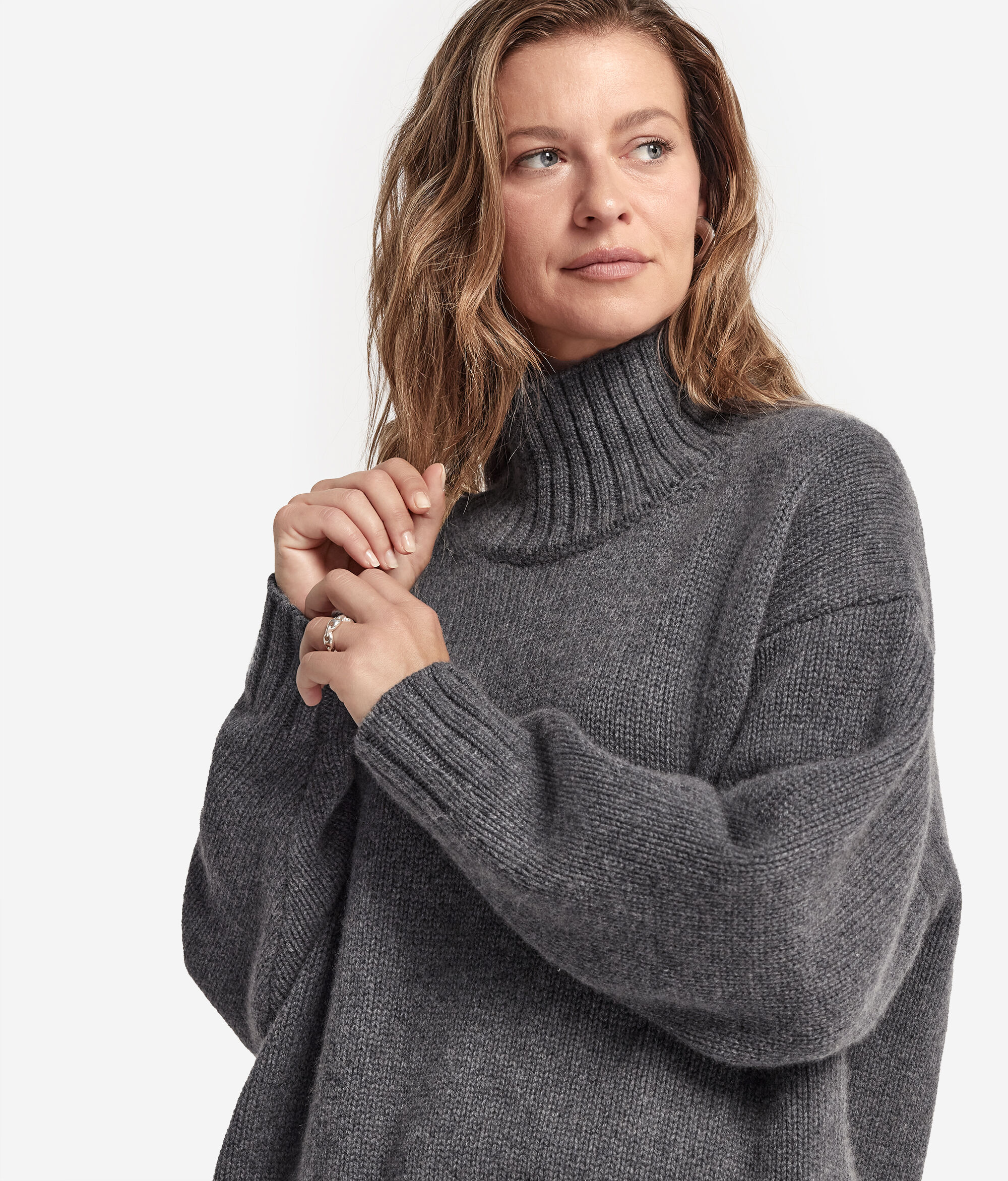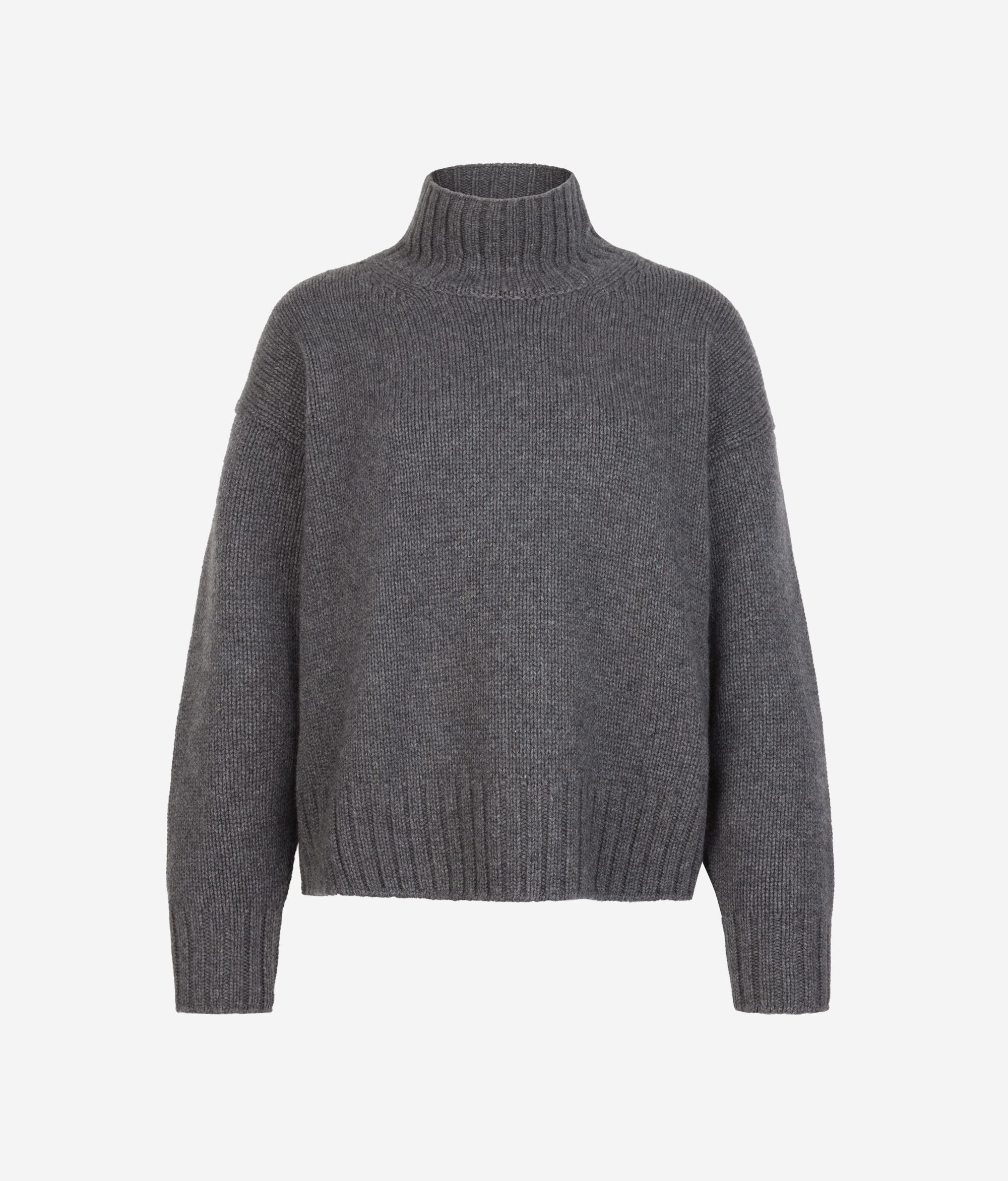 The quality of Ultrasoft Cashmere Tricot meets the contemporary lines of this boat-neck style sweater. The classic look is combined with the natural softness of the yarn and the relaxed-fit silhouette with dropped shoulders, which helps in rendering the piece comfortable for everyday wear.