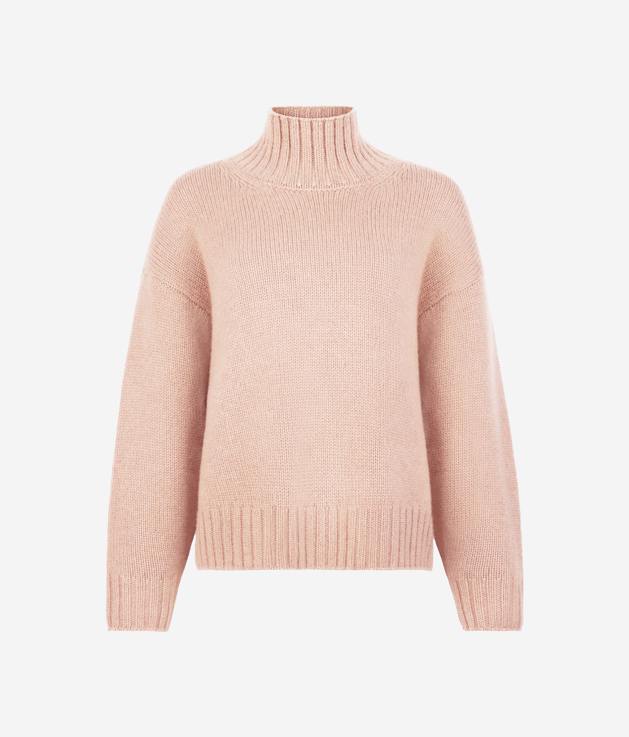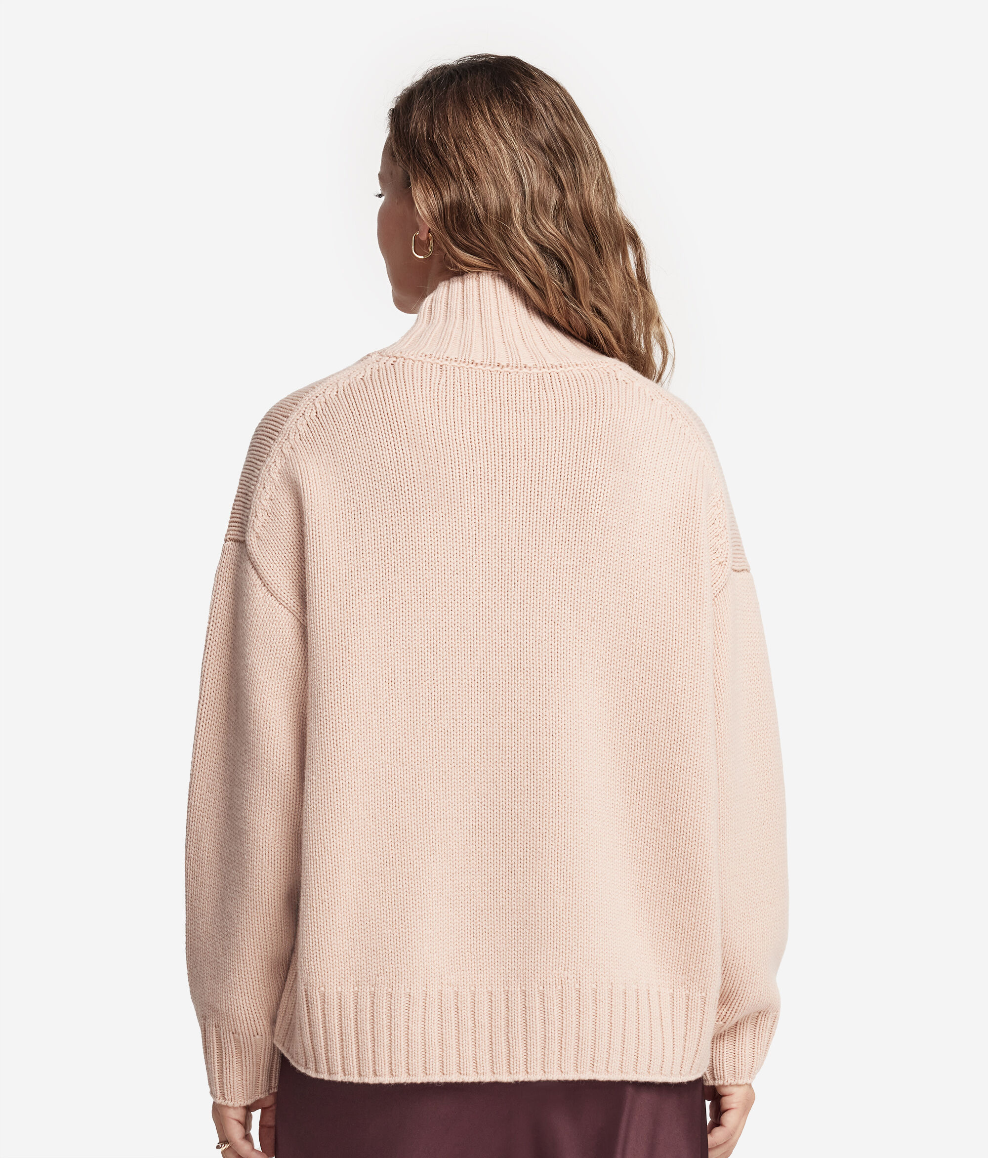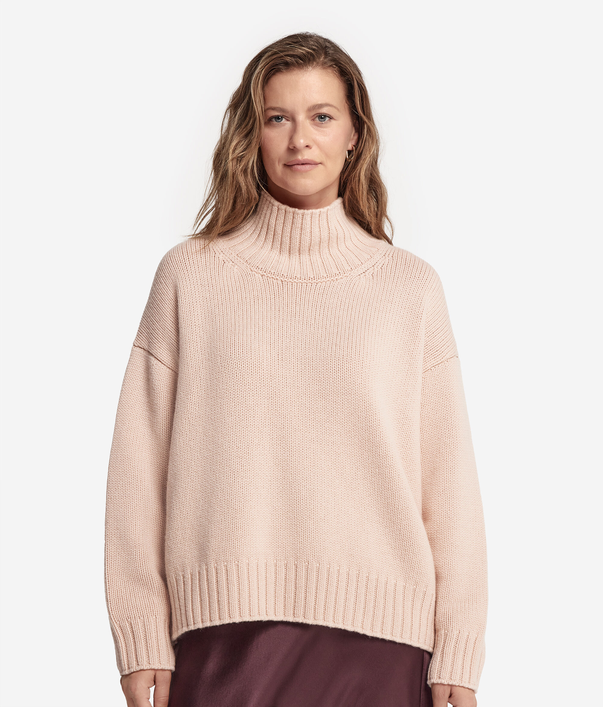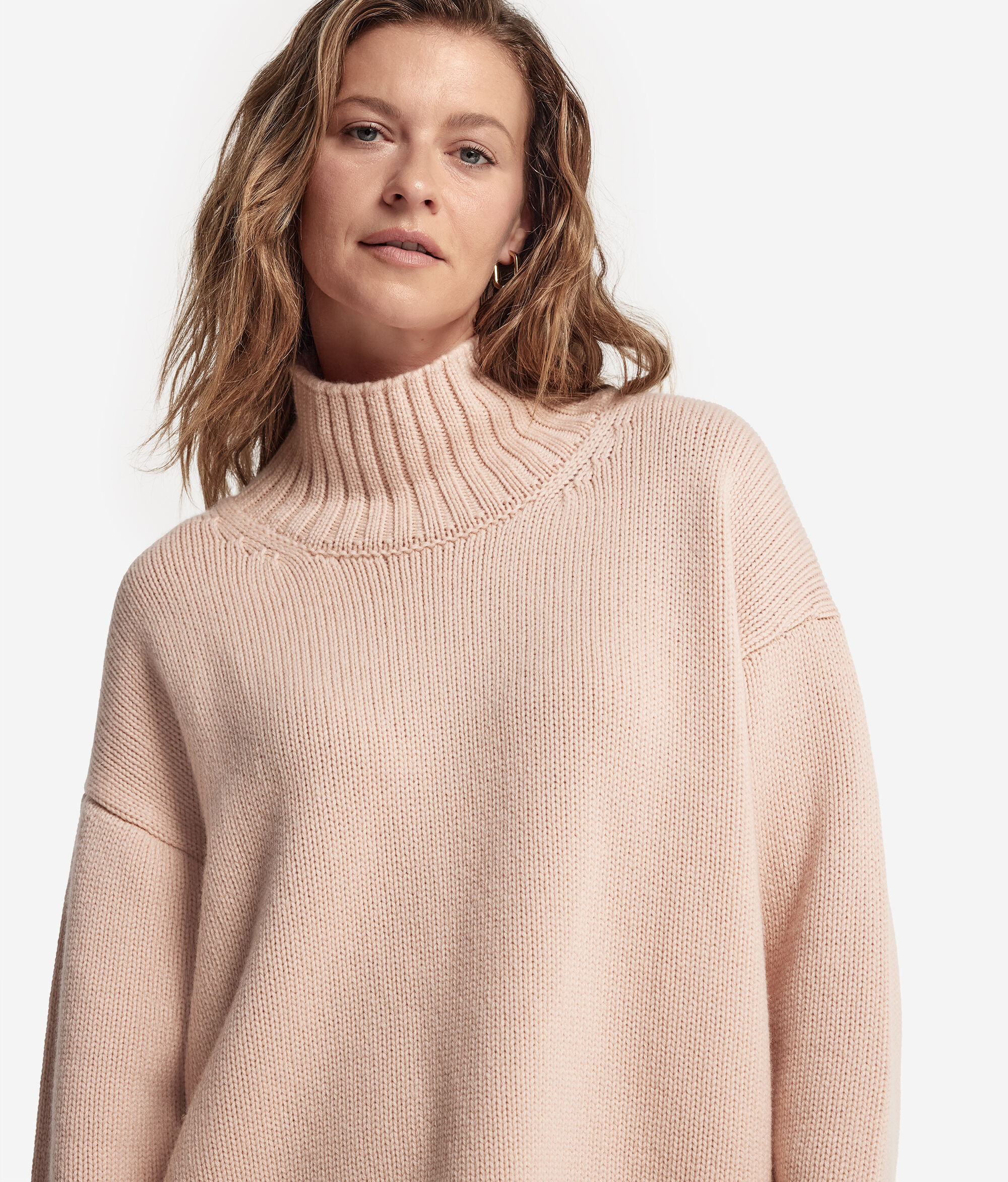 The quality of Ultrasoft Cashmere Tricot meets the contemporary lines of this boat-neck style sweater. The classic look is combined with the natural softness of the yarn and the relaxed-fit silhouette with dropped shoulders, which helps in rendering the piece comfortable for everyday wear.