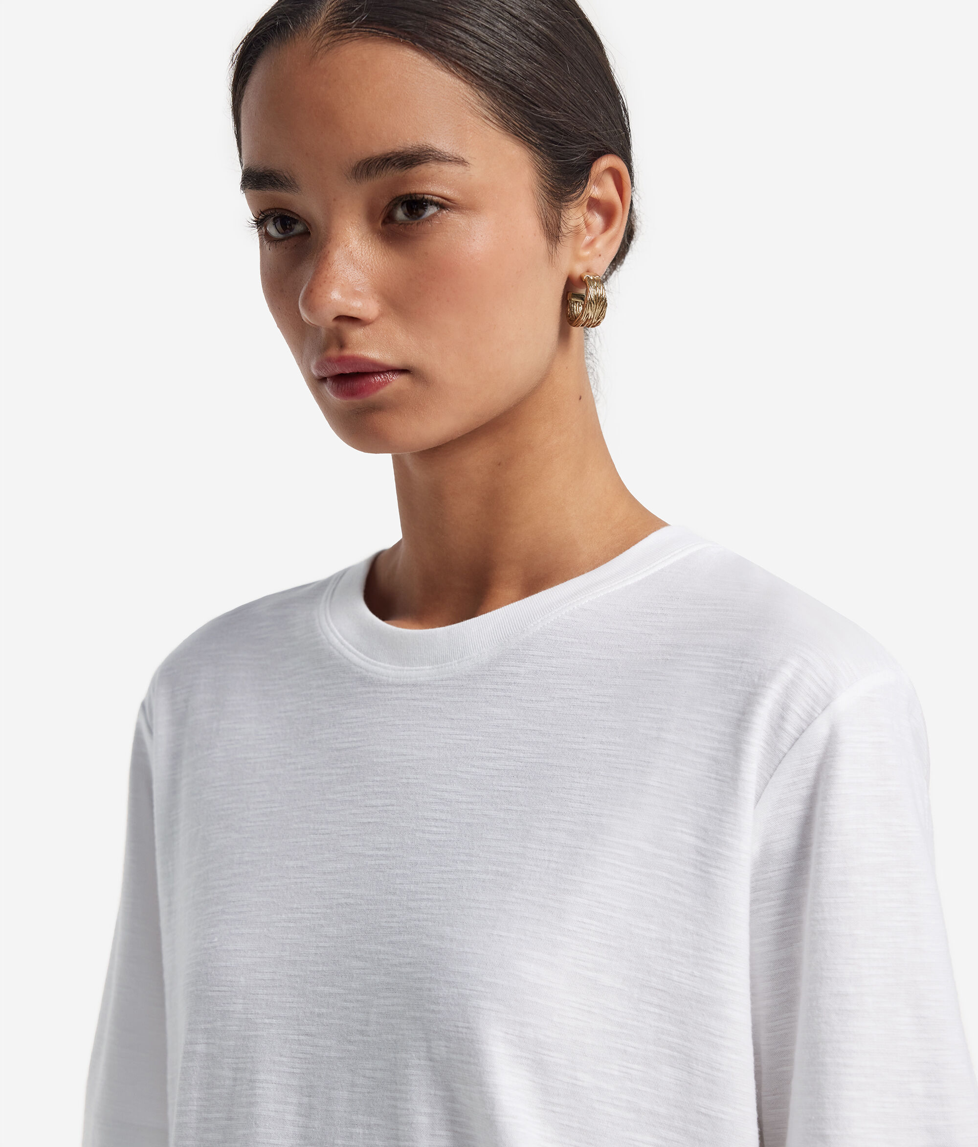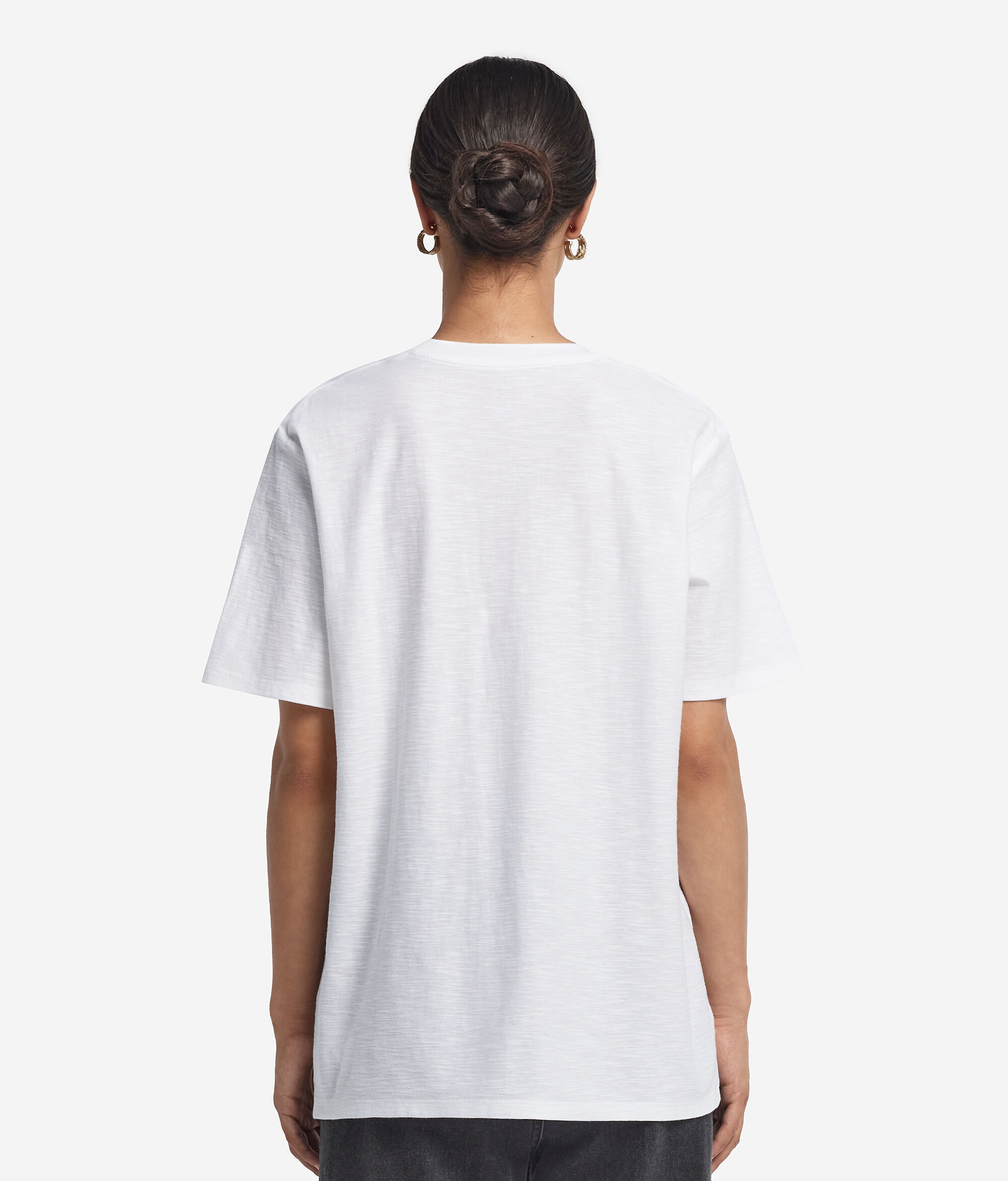 The properties of the natural yarn give this 100% cotton T-shirt a smooth and comfortable texture. The relaxed fit and perfect hip length exalt its contemporary attitude, making it ideal for completing casual looks with simplicity and style.