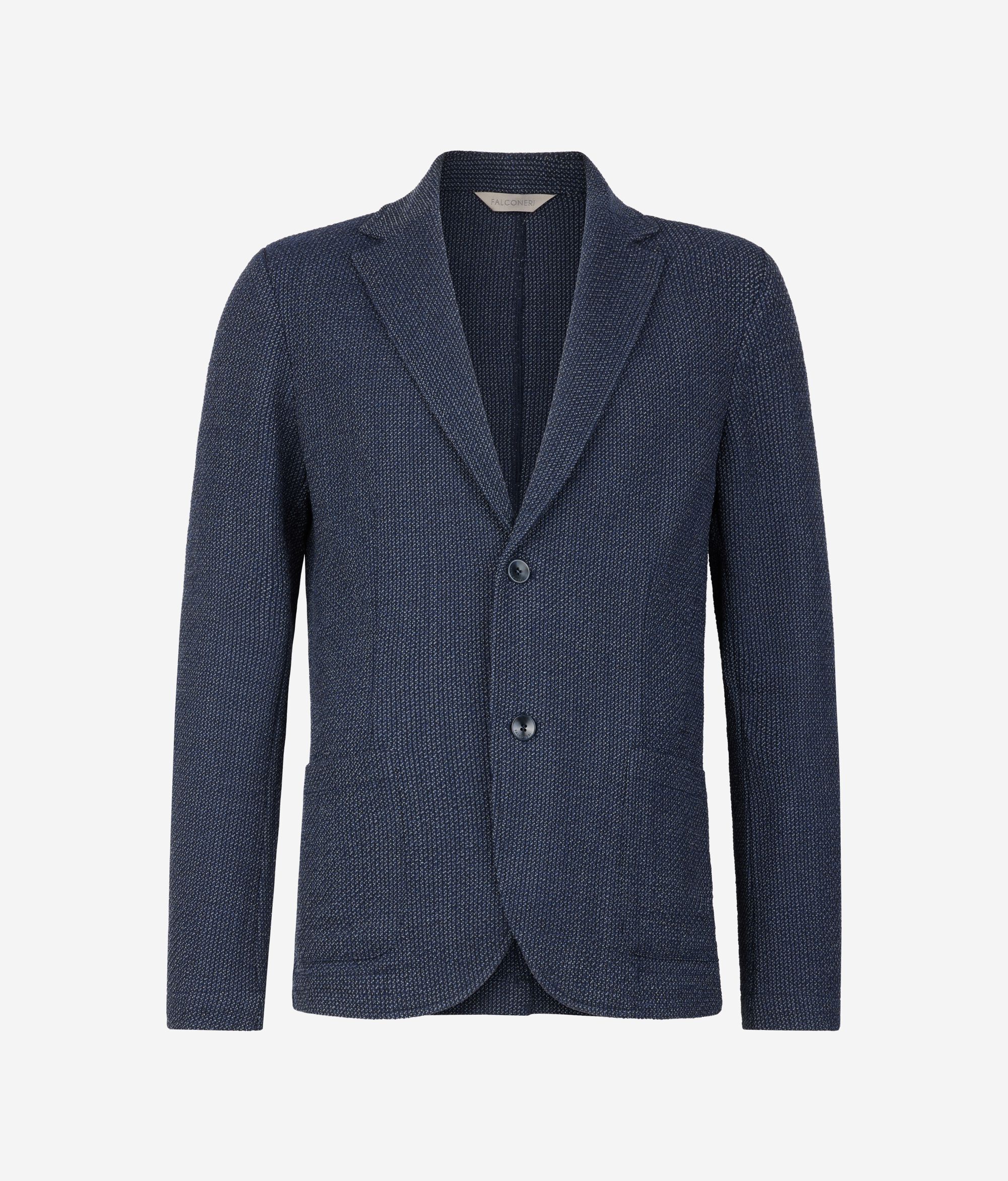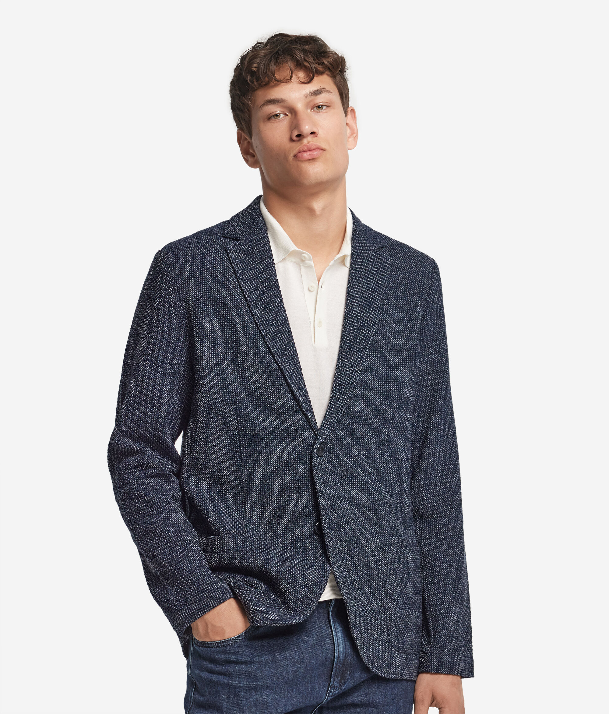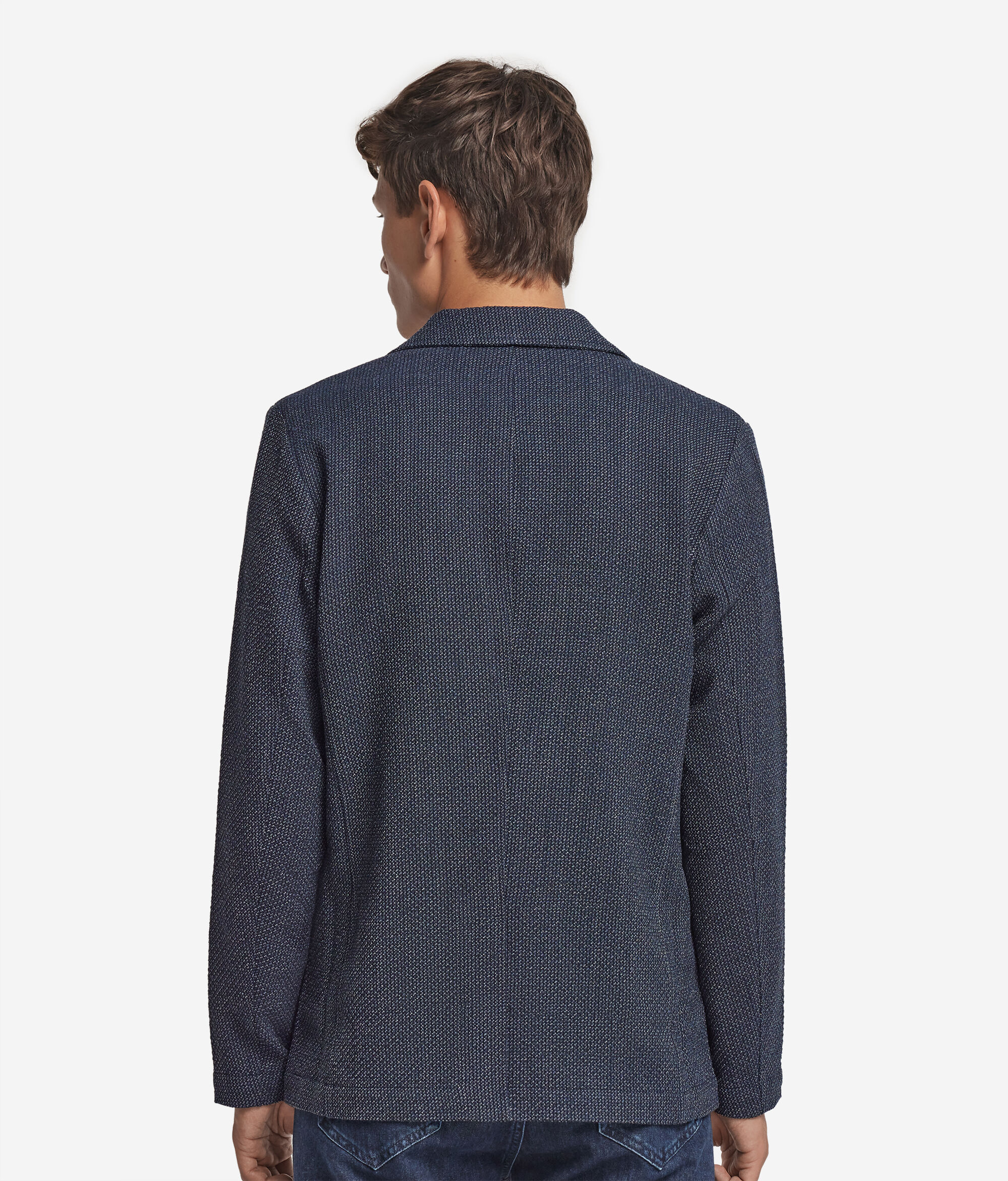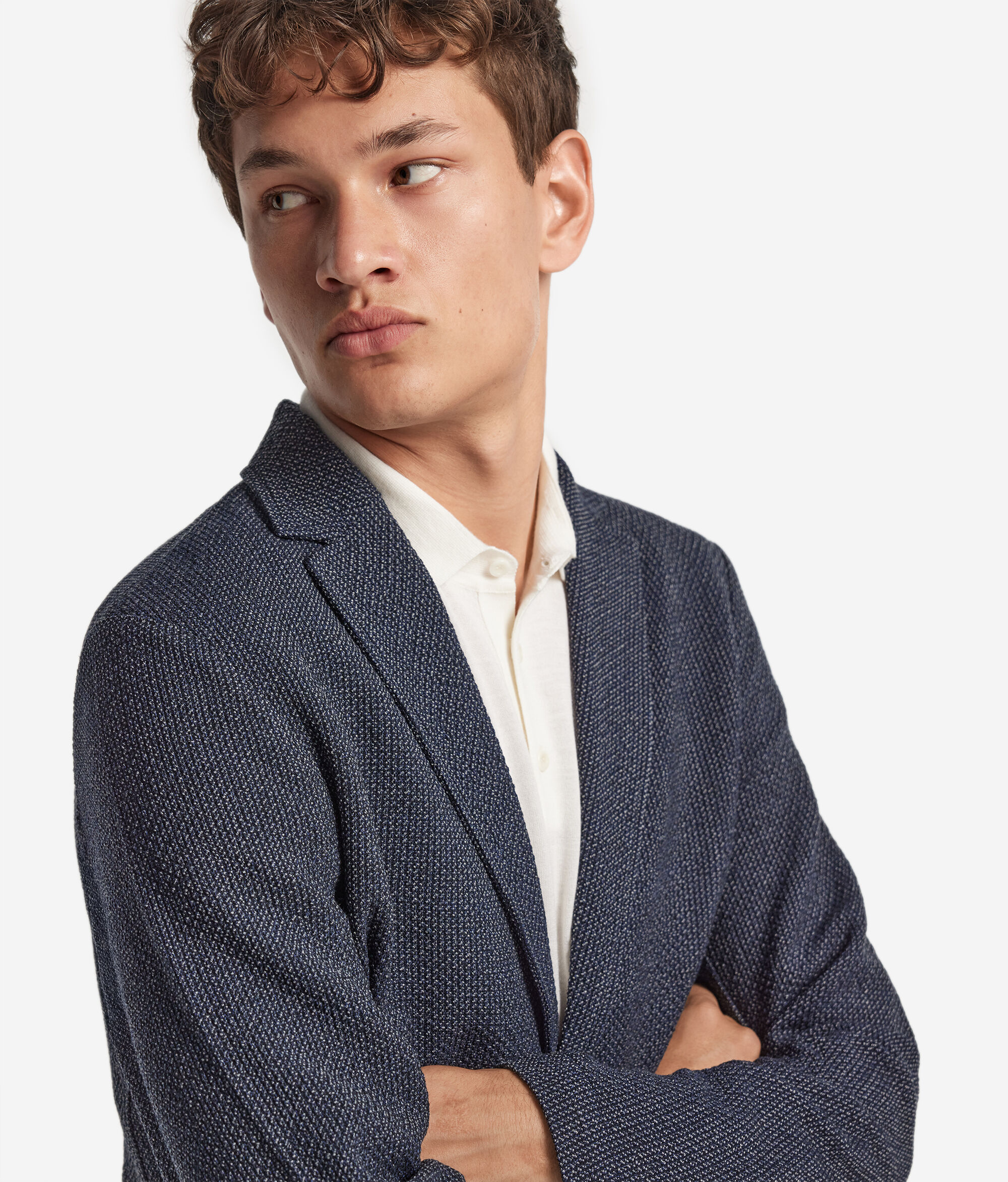 Characterized by an understated and contemporary elegance, this jacket made of wool mouliné fabric stands out for its rich texture and slightly wavy appearance. The classic lapel with top-stitching and patch pockets enhances the tailored design, while the center buttoning fastener and back slit offer a perfect balance between minimalist style and refined details.