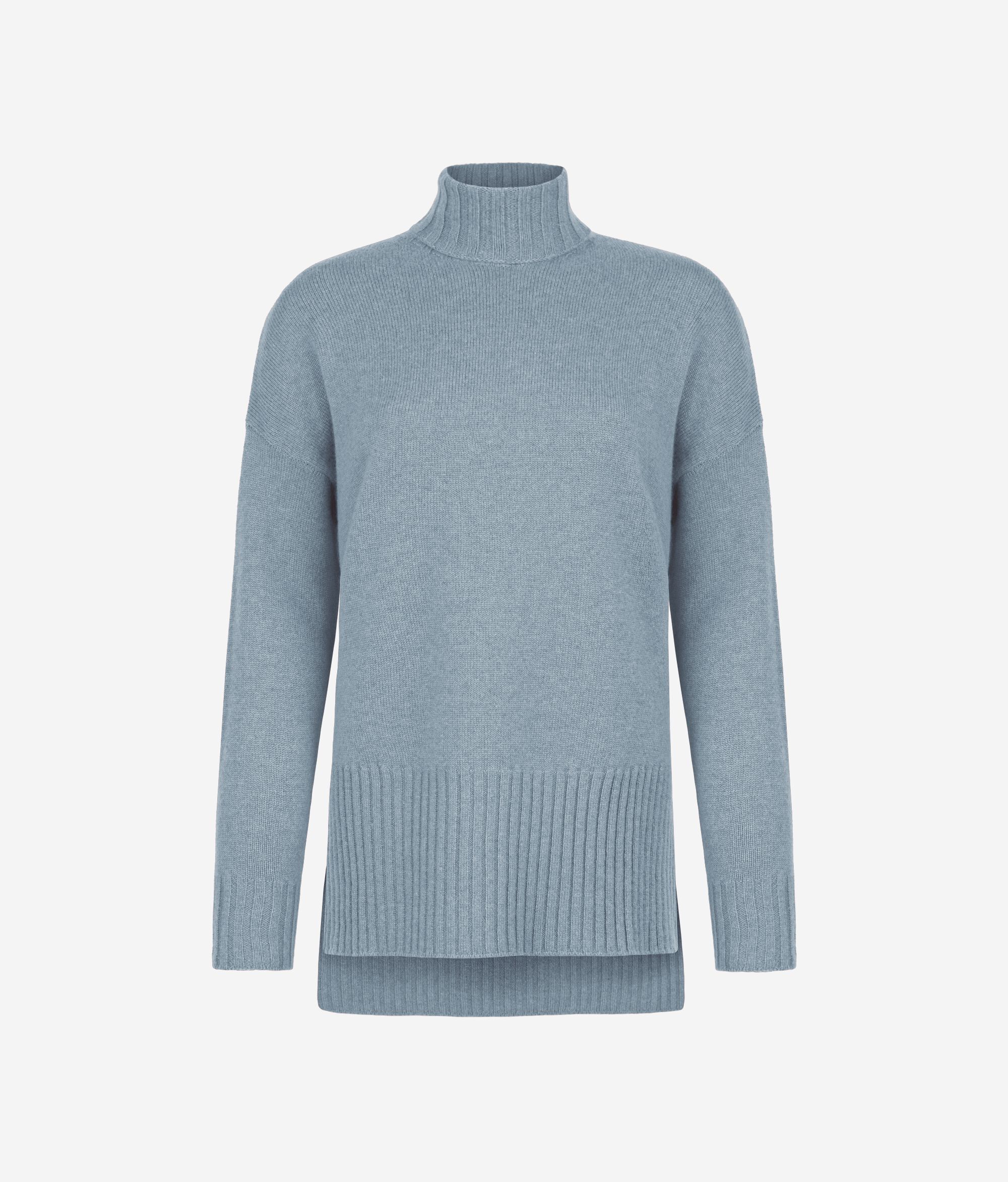 Wrap yourself in unparalleled luxury with Falconeri's cashmere oversized turtleneck sweater. Made from ultrasoft cashmere, it offers an incredibly smooth and luxurious feel against the skin. The high turtleneck adds a bold, cozy statement, while its loose fit drapes perfectly for an effortlessly relaxed look. The turtleneck sweater’s slightly dropped shoulders enhance its laid-back yet refined silhouette, making it a versatile piece for layering or wearing solo. Ribbed details at the collar, cuffs, and hem provide subtle texture and structure, ensuring the cashmere sweater holds its shape while remaining soft and comfortable. The asymmetrical, oversized length offers a modern, flowing fit, creating an elevated silhouette that works beautifully tucked into trousers or left loose over leggings. Finished with side slits for added movement, this cashmere oversized turtleneck exudes both ease and sophistication. The artisanal garment-dyed colorways give each piece a unique depth, with slight variations in color that make your oversized high-neck sweater one of a kind.