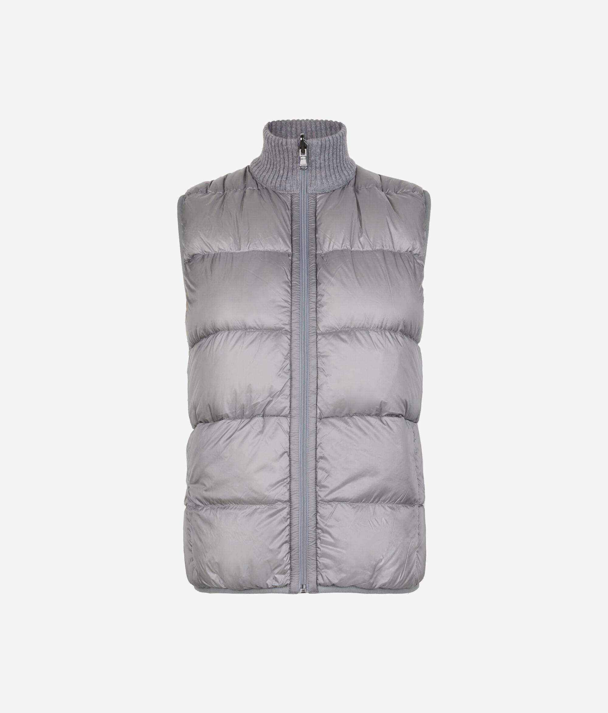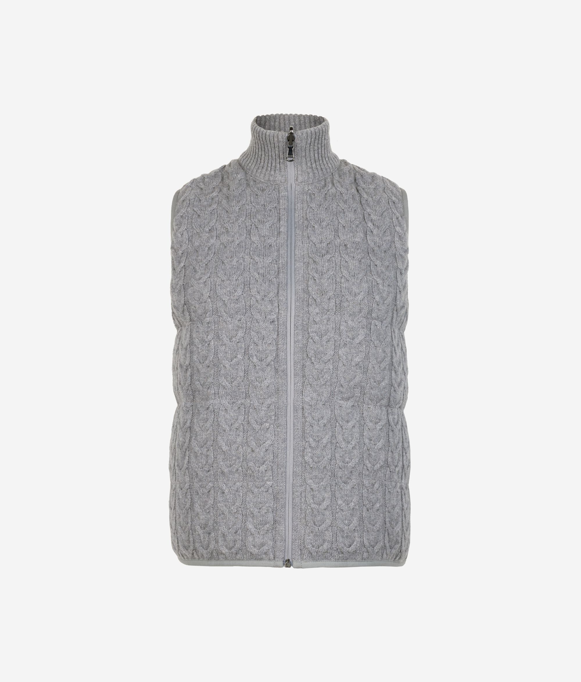 Crafted from premium Ultrasoft Cashmere and nylon, this reversible sleeveless short quilted jacket stands out for its vertical cable-knit, which gives the fabric depth and character. The metal zippered closure is paired with an Ultrasoft Cashmere turtleneck collar, ensuring snug comfort and extra protection. With a hip-length and Regular Fit. We recommend sizing up one to two sizes for the best fit, this piece combines versatility, style and functionality in perfect balance.