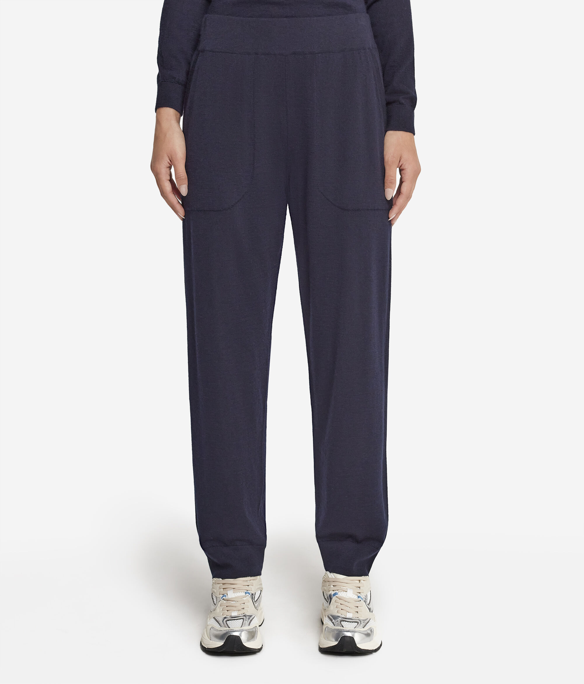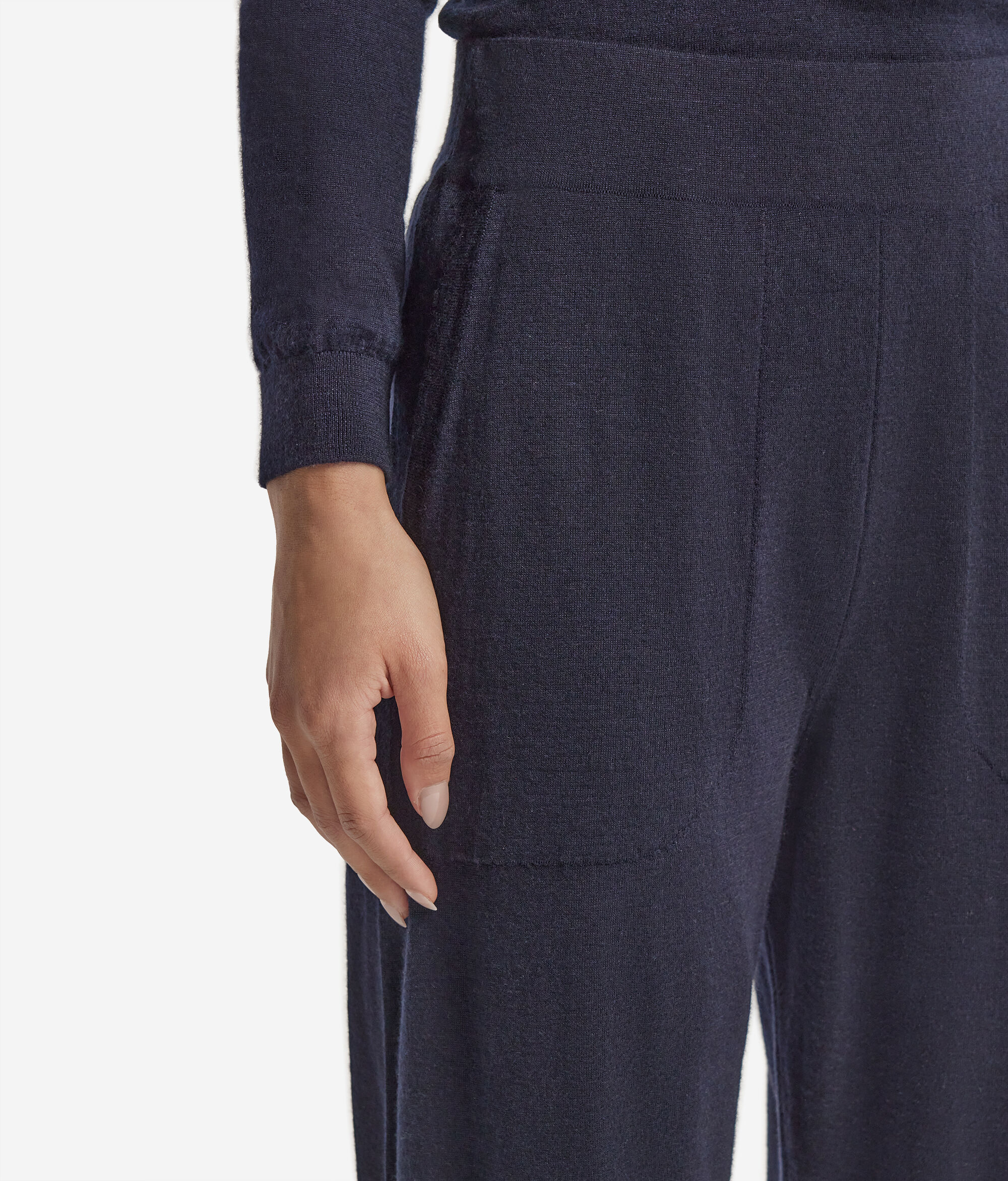 Ultrafine cashmere baggy pants with elastic waistband and slightly dropped inseam for a relaxed fit. The cuffs are finished off with ribbed trim. Slanted welt pockets complete the look.