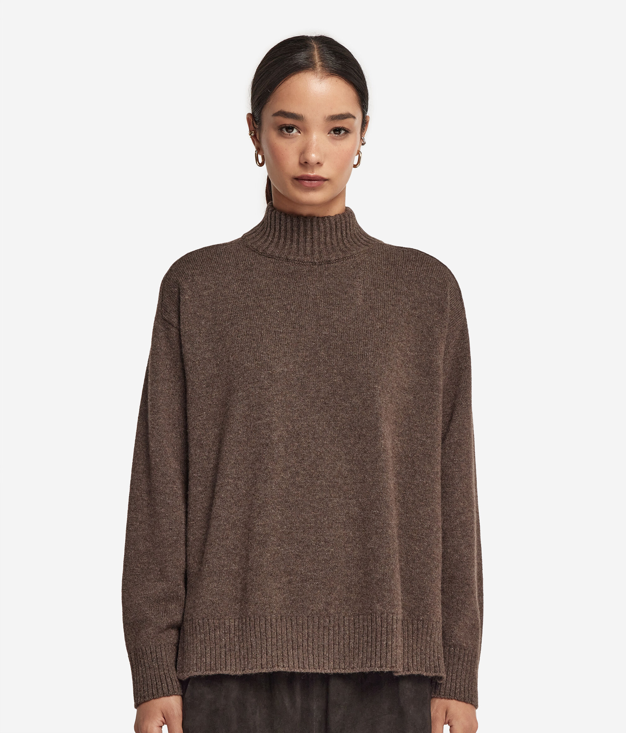 Fine yarns and feminine details blend harmoniously in this turtleneck sweater made of Ultrasoft Cashmere. Dropped set-in shoulders emphasize the relaxed fit of the piece, which is complemented by a ribbed trim that lends a touch of casual elegance.