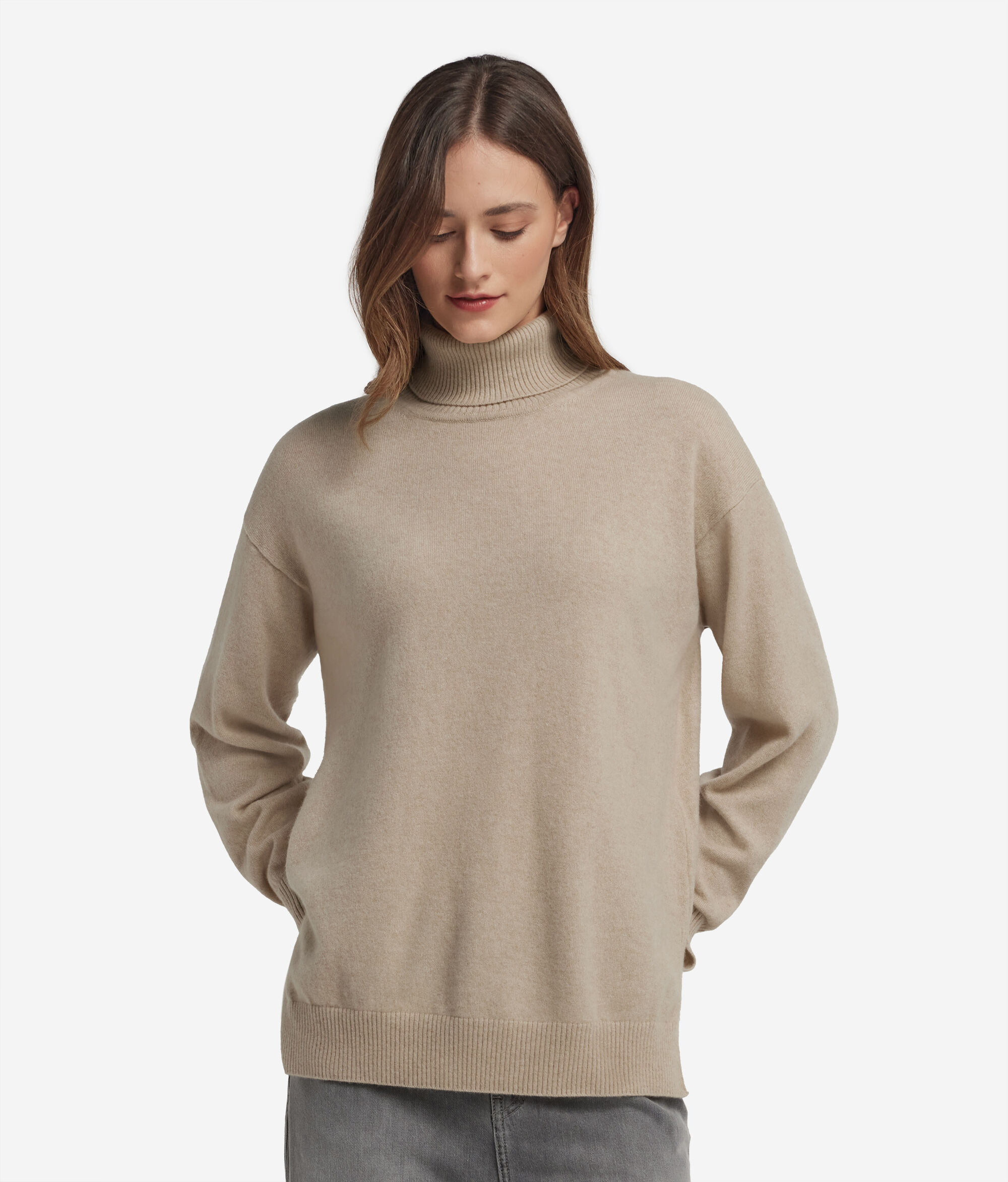 Ultrasoft Cashmere Turtleneck Sweater with Slits